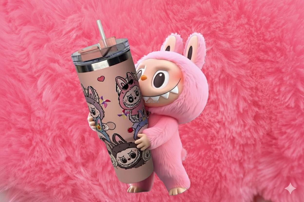 El color rosa le da un toque delicado y femenino, mientras que su estética juguetona inspirada en Labubu lo hace llamativo y divertido, ideal tanto para uso personal como para regalar. Además, es un recipiente ecoamigable, ya que el uso de la pajilla reutilizable contribuye a reducir el consumo de plásticos desechables.